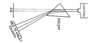 But at the same time it becomes coloured, with all the colours of the rainbow. Whenever you get this refraction or "breaking back" you also get colour. When I