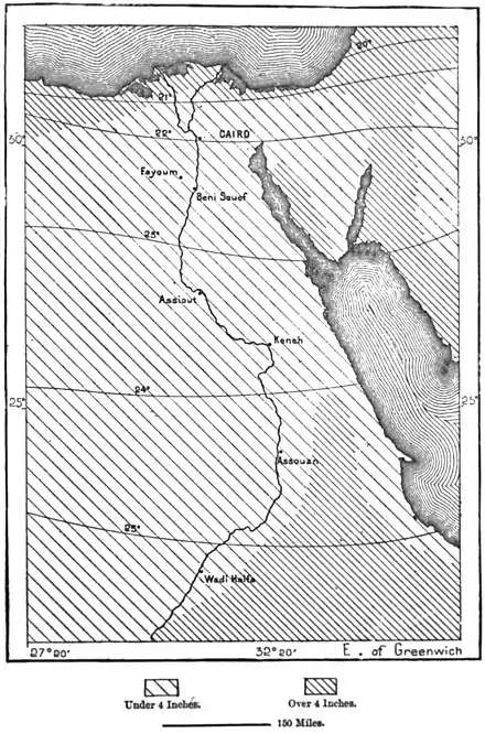 Fig. 99. — Isothermal Lines and Rainfall of Egypt.
