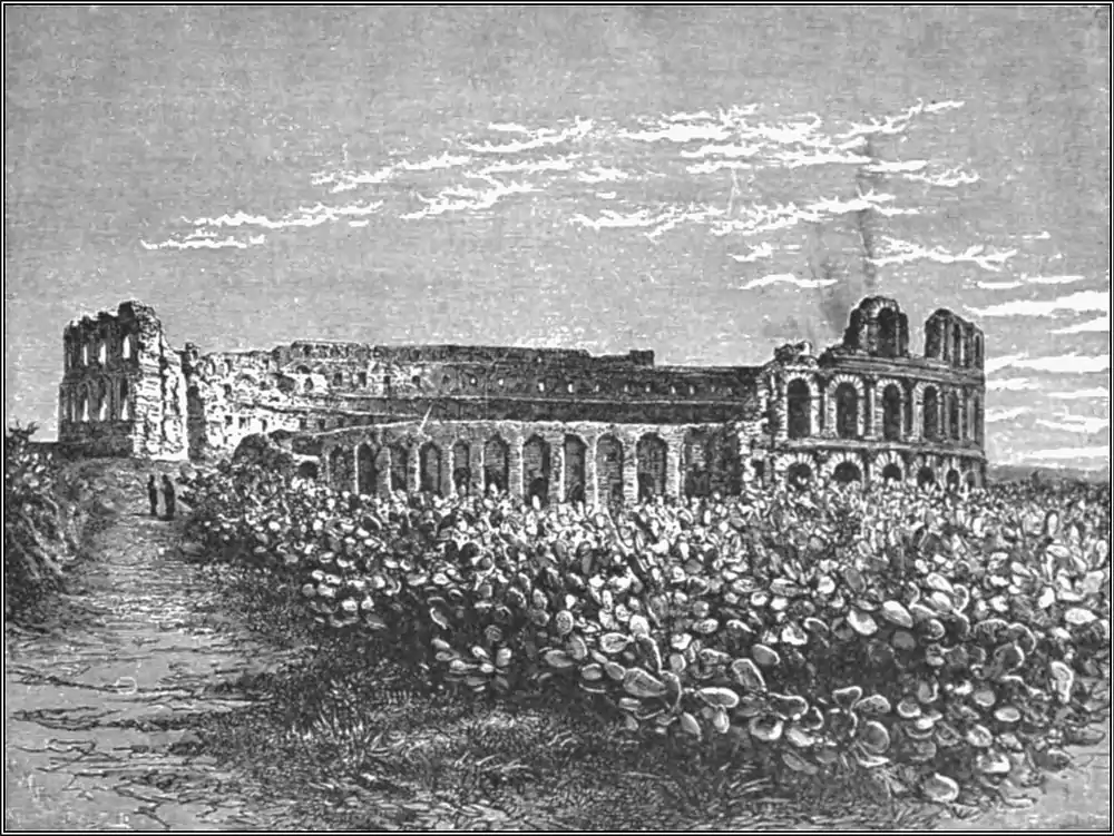 years. A subterranean passage by which the arena was flooded for the naval engagements of the Roman games is pointed out by the Arabs as the remains of a secret gallery by which the garrison communicated with the coast and received its supplies.