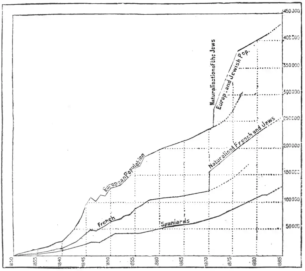 their preponderating political influence. The Maltese, who during the first years of the occupation arrived in large numbers, as camp sutlers, petty dealers, and gardeners, are now scarcely seen in the country. But their place has been taken by Calabrians and other Italians, who come in ever-increasing numbers, seeking employment as builders and navvies. Still more numerous are the Spanish settlers, who comprise at present about one-fourth of all the Europeans residing in Algeria, while in the province of Oran they are in the majority. But even here all European elements show a general tendency to assimilate with the preponderating French population, The advantages of naturalisation are so great that many