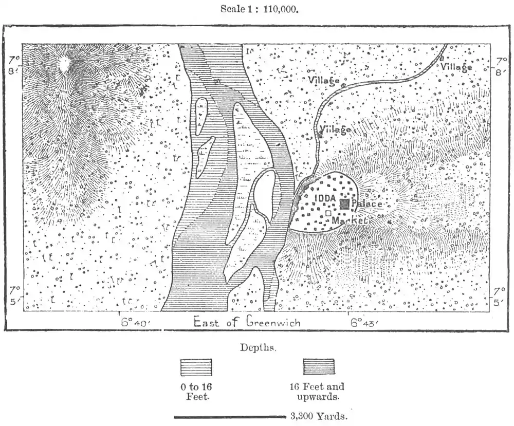 Since the commercial importance of the Benue has been recognised, the English have established a factory at the village of Lokoja, near the Niger confluence, and this place has now become an important trading, political, and religious centre. Igbegbé, on the left bank of the main stream below the junction, was formerly a chief stronghold of the slave-hunters, and is still a busy trading-place. Idda,