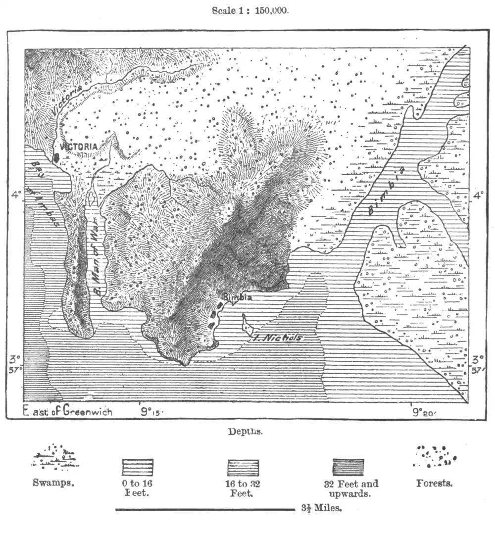 The term Biafra figuring on most maps as the name of a town in the Cameroons basin has absolutely no existence. It appears to have been applied to some imaginary kingdom or capital, and afterwards extended to the neighbouring