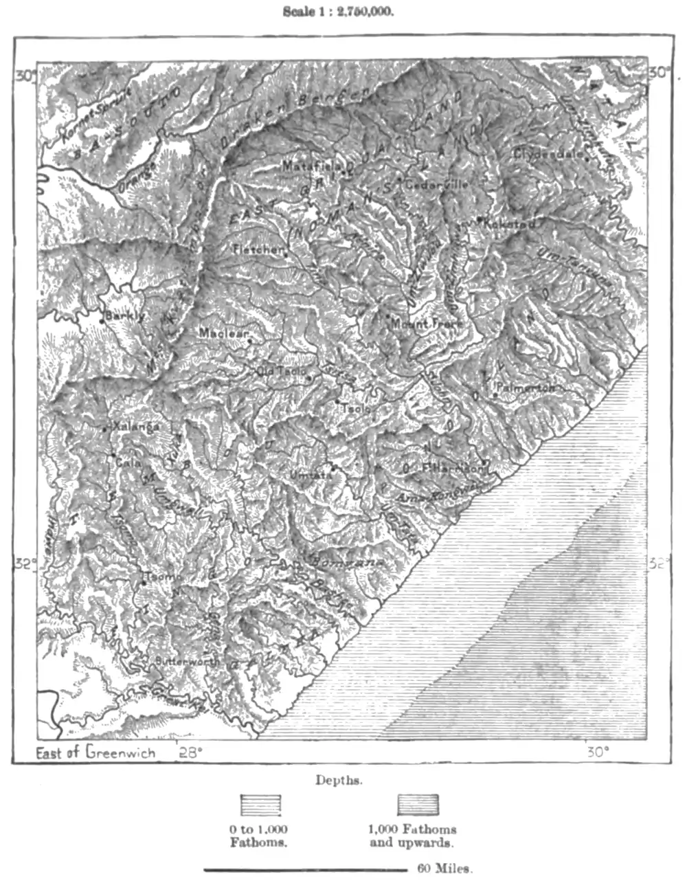 accept concessions of land in the Transkei district, between the Kei and Kogha rivers. Recently, also, a European society has acquired one of the finest tracts in this region, the territory traversed by the lower St. John River (Um-Zimvubu), which is sooner or later destined to become the chief outlet for the inland districts