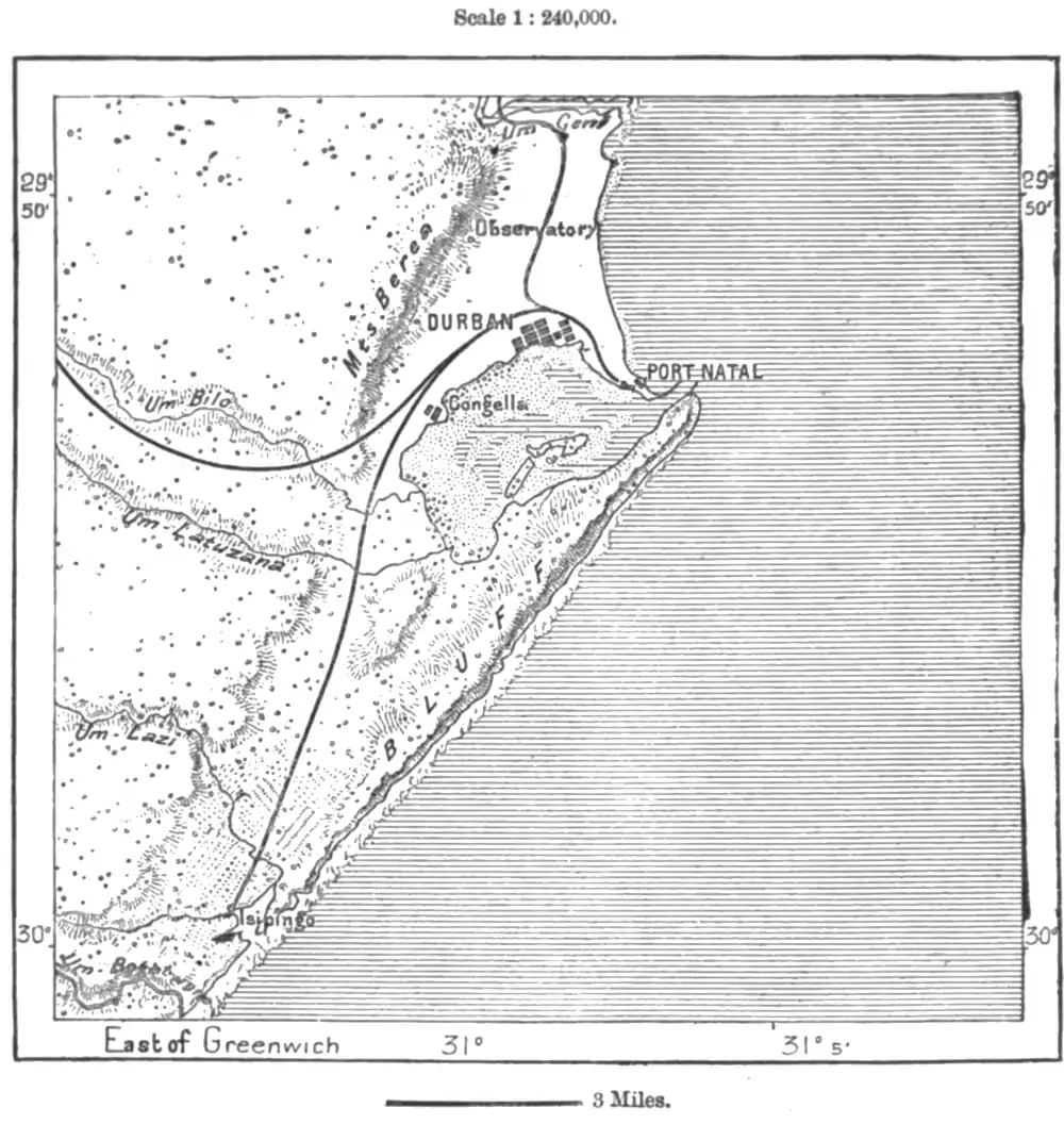 the level of the inland plateaux. Most of the main highways converge on Port Natal, where is centred all the foreign trade of the colony.