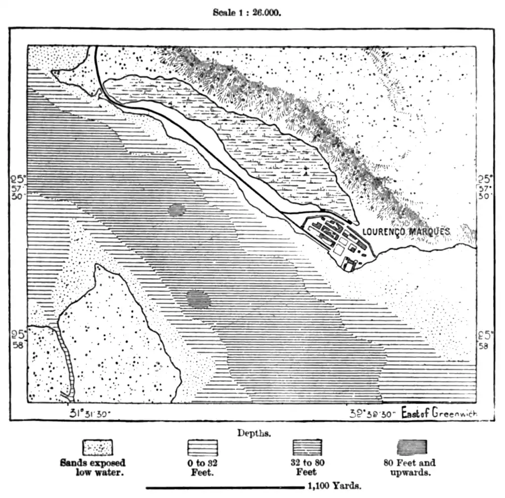 The town of Lourenço Marques, founded in 1867 on the site of a village that bore the same name and which had been seized by the Va-Twa Zulus in 1823, is eo designated in memory of the navigator who established the first Portuguese factory on the shores of Delagoa Bay, in the year 1544. But these waters had already been explored by Pedro Quaresma, who made no attempt to secure a footing in the district. The low houses of the present town, built of stone and disposed along the streets running at right angles to each other, present a pleasant