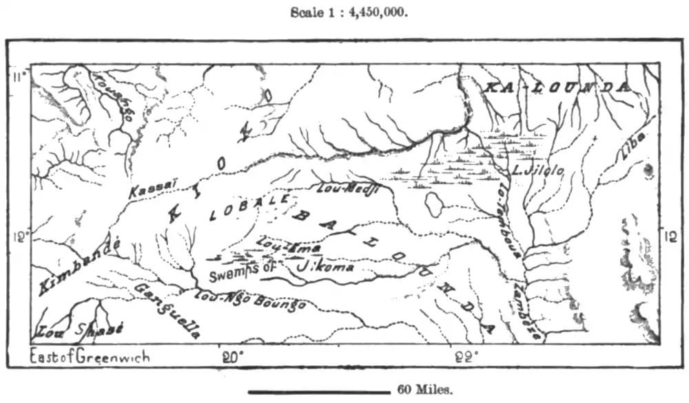 The Upper Ku-Bango and the Ku-Ito valleys are occupied mainly by the Ganguellas, who are akin to those of the same name in Angola, and who, here as there, are divided into numerous communities, destitute of all political cohesion. A dialect of the Ganguella language is also spoken by the Lushazes of the Upper Ewa-Ndo, who are noted as skilled agriculturists and artisans, manufacturing highly prized iron implements, wicker-work objects, and woven fabrics, Far less vain of their personal appearance, and devoting less attention to elaborate head-dressing than most of their neighbours, the Lushazes still clothe themselves in wild beasts' skins and robes of macerated bast.