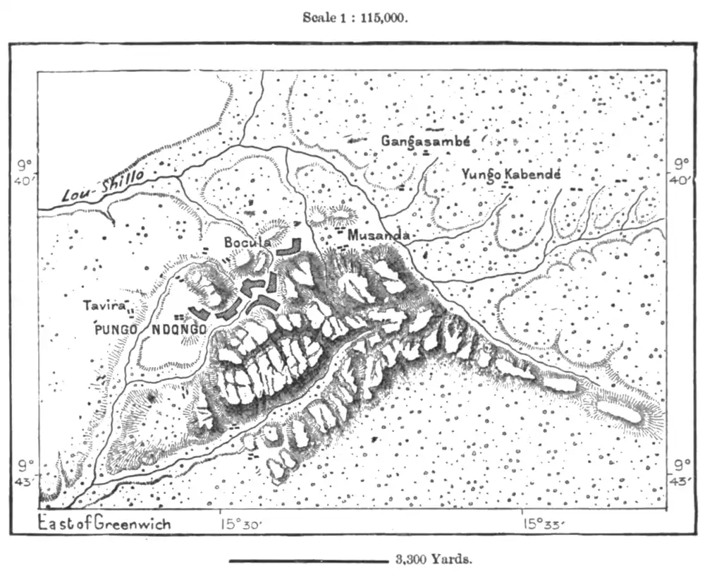 In the upper valley of the Lu-Caila there are no large towns. Even Duque de Bragança, or simply Duque, the most advanced Portuguese station towards the north-east of the Angolan territory, is a mere presidio, or military post, much dreaded on account of the neighbouring malarious swamps caused by the overflow of the river, which flows east of the plateau crowned by the fort. Hence, few troops are sent to this station except military convicts, who avenge themselves by levying blackmail on the natives, under the disguise of Government taxes. As at Pamba, the result of this system of administration has been the