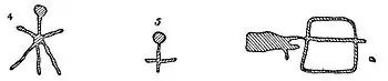Fig. 7 is a double character. The one on the left may represent the antler of a stag, the other a bow. The whole figure from left to right measures 23½ inches.