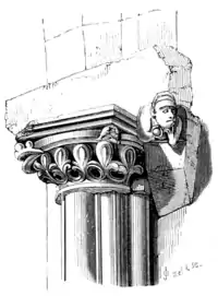 The Early English style is found in the naves of Bicester and Charlton-on-Otmoor, in the nave of Kirtlington, in the tower of Middleton Stoney, in the east windows of Hampton Poyle, and one or two other churches, and in various parts of Stonesfield and Stanton Harcourt. The chancel of Bucknell church is pointed out as a fine specimen of the manner in which country churches were built in the thirteenth century. The nave and aisles of Bicester church present some interesting examples of Early English clustered columns, many of which have been mutilated. They have capitals, with the stiff-leaved foliage, as represented in the cut.