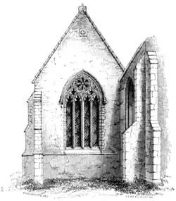 East end of South Aisle, Kidlington, c. 1320. Of these the south aisle and porch of Kidlington are particularly worthy of notice. That of Chesterton contains some elegant early Decorated sedilia, consisting of three cinquefoil arches, with a square label over them, with ball-flowers.