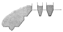 Mouldings of West Window of Nave.The two buttresses of the north corner have each an elaborate niche in the stage corresponding with the lower part of the window. The moulding of the jambs and architraves of all the chancel windows has a bold convex section, which I have not often noticed in Perpendicular work, except of a very late period, but it frequently occurs in Decorated windows. In fact the chancel windows of Shiffnal, which are of a somewhat early Decorated, have a moulding of much the same character. Its effect, as regards light and shade, is excellent, and it is probably more durable than a moulding comprising the large hollow so common in the Perpendicular style. This kind of moulding appears in the tower-arches, the pier-arches on the northern side, all the doors, and some of the windows of the north aisle; in short, I may say wherever there is a variation from the plain splay or chamfer. I may notice that the transom of the east window is not very dissimilar from one in a Decorated window in the neighbouring church of Albrighton. It will be observed, that in this window a