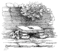 On the surface of this slab, nearly in the centre, there is a cavity about a foot square, and one inch deep:there appear no crosses upon this altar-slab, nor any moulding whatever. The walls are built of pieces of granite, which is the common material of the neighbourhood, put together much in the same rude style as St. Piran's. The doorway is on the north side fronting the well, it is 2 ft. 9 in. in width, the arched head is gone, as is also that of the little window, which is immediately opposite in the south wall. This window measures about 1 ft. 3 in. in width.