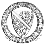 - ↑ His arms were—az. a bend ar. between two cotises and six lions rampant, or.