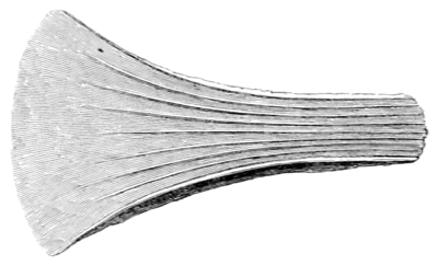 2nd. The wedge with sides more or less overlapping, blade thicker than the wedge for insertion into the handle, and a stop-ridge or elevation at the termination of the blade.