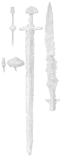 - ↑ This fashion of the knuckle-pomel is well illustrated by the fine Danish specimen in Worsaae's Primeval Antiq., Transl. by Thoms, p. 49.