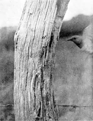 in the accompanying illustrations. The history of the case is as follows: A pair of Bluebirds, after several previous attempts at house-keeping, and subsequent removals by ‘small boys,’ at last selected an old, deserted, Woodpecker’s hole in a fence-post, and built, as usual, a nest of dry grass with a softer lining of horse-hair. The birds had already begun incubating the three pale blue eggs, which formed the set, when I disturbed them. I crept within five feet of the post be-