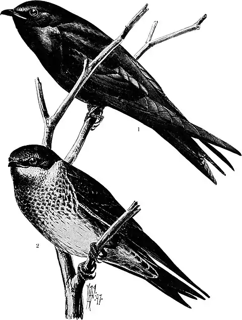 Purple Martin. 1. Male2. Female Length, 7.50 inches.
