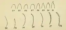 The margin of the leaf is entire when it is not indented (fig. 32), serrated when it has small acute indentations and projections (fig. 33), crenated