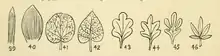 when it has small acute indentations and rounded projections (fig. 34), dentated when it has obtuse incisions and pointed projections (fig. 35), sinuated when it has obtuse incisions and rounded projections (fig. 36), ciliated when the margin is set with fine hairs (fig. 37), incised when the margin exhibits alternately larger; and smaller indentations and projections (fig. 38).
