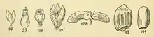 Among indehiscent seeds some divide longitudinally along the lines of the capsules, and are called schizocarps. Sometimes these split in two, as in the Fennel, or Sycamore; the latter divides into two winged seeds (fig. 102), called keys (like the single-winged seeds of the Ash-tree) or samaras.
