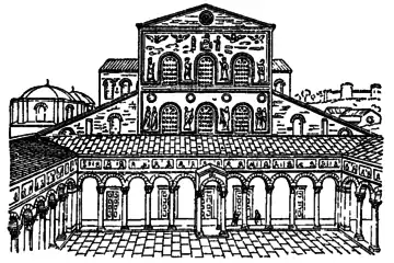 | Fig. 9.—Façade of old St Peter’s, Rome. |