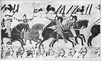 10. WILLIAM RAISES HIS HELMET TO RALLY HIS MEN.11. ODO, BISHOP OF BAYEUX, WIELDING HIS MACE.