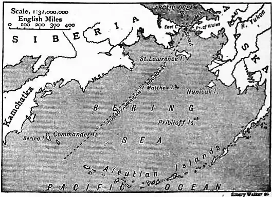 In the year 1867 the United States government had purchased from Russia all her territorial rights in Alaska and the adjacent islands. The boundary between the two powers, as laid down by the treaty for purchase, was a line drawn from the middle of Bering Strait south-west to a point midway between the Aleutian and Komandorski Islands dividing Bering Sea into two parts, of which the larger was on the American side of this line. This portion included the Pribiloff Islands, which are the principal breeding-grounds of the seals frequenting those seas. By certain acts of congress, passed between 1868 and 1873, the killing of seals was prohibited upon the islands of the Pribiloff group and in “the waters adjacent thereto” except upon certain specified conditions. No definition of the meaning of the words “adjacent waters” was given in the act. In 1870 the exclusive rights of killing seals upon these islands was leased by the United States to the Alaska Commercial Company, upon conditions limiting the numbers to be taken annually, and otherwise providing for their protection. As early as 1872 the operations of foreign sealers attracted the attention of the United States government, but any precautions then taken seem to have been directed against the capture of seals on their way through the passages between the Aleutian Islands, and no claim to jurisdiction beyond the three-mile limit appears to have been put forward. On the 12th of March 1881, however, the acting secretary of the United States treasury, in answer to a letter asking for an interpretation of the words “waters adjacent thereto” in the acts of 1868 and 1873, stated that all the waters east of the boundary line were considered to be within the waters of Alaska territory. In March 1886 this letter was communicated to the San Francisco customs by Mr Daniel Manning, secretary of the treasury, for publication. In the same summer three British sealers, the “Carolena,” “Onward” and “Thornton,” were captured by an American revenue cutter 60 m. from land. They were condemned by the district judge on the express ground that they had been sealing within the limits of Alaska territory. Diplomatic representations followed, and an order for release was issued, but in 1887 further captures were made and were judicially supported upon the same grounds. The respective positions taken up by the two governments in the controversy which ensued may be thus indicated. The United States claimed as a matter of right an exclusive jurisdiction over the sealing industry in Bering Sea; they also contended that the protection of the fur seal was, upon grounds both of morality and interest, an international duty, and should be secured by international arrangement. The British government repudiated the claim of right, but were willing to negotiate upon the question of international regulation. Between 1887 and 1890 negotiations were carried on between Russia, Great Britain and the United States with a view to a joint convention. Unfortunately the parties were unable to agree as to the principles upon which regulation should be based. The negotiations were wrecked upon the question of pelagic sealing. The only seal nurseries were upon the Pribiloff Islands, which belonged to the United States, and the Komandorski group, which belonged to Russia. Consequently to prohibit pelagic sealing would have been to exclude Canada from the industry. The United States, nevertheless, insisted that such prohibition was indispensable on the grounds—(1) that pelagic sealing involved the destruction of breeding stock, because it was practically impossible to distinguish between the male and female seal when in the water; (2) that it was unnecessarily wasteful, inasmuch as a large proportion of the seals so killed were lost. On the other hand, it was contended by Great Britain that in all known cases the extermination of seals had been the result of operations upon land, and had never been caused by sealing exclusively pelagic. The negotiations came to nothing, and the United States fell back upon their claim of right. In June 1890 it was reported that certain American revenue cutters had been ordered to proceed to Bering Sea. Sir Julian Pauncefote, the British ambassador at Washington, having failed to obtain an assurance that British vessels would not be interfered with, laid a formal protest before the United States government.