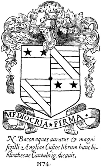 Fig. 2.—Book-plate of Sir Nicholas Bacon (slightly reduced). |