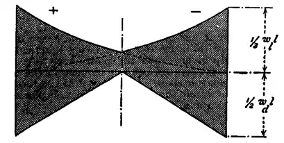is wl; the reactions at abutments, R1 = R2 = 12wl. The distribution of shear on vertical sections is given by the ordinates of a sloping line. The greatest bending moment is at the centre and = Mc = 18wl2. At any point x from the abutment, the bending moment is M = 12wx(l−x), an equation to a parabola.
