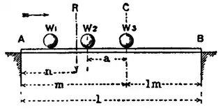 This criterion may be stated in another way. The greatest bending moment will occur with one of the greatest loads at the section, and when this further condition is satisfied. Let fig. 49 represent a beam with the series of loads travelling from the right. Let a b be