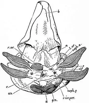 | The four gill-plumes (ctenidia) are not lettered. | |