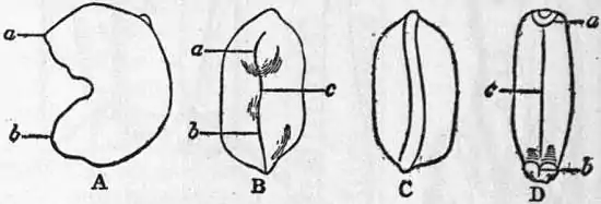a, Anterior. b, Posterior extremity. c, Furrow, in which the narrow foot is concealed. |