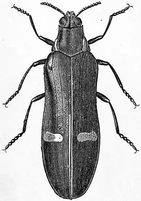 on the prothorax and an area beneath the base of the abdomen; these are “fireflies” (see above). The larvae of Elateridae are elongate, worm-like grubs, with narrow bodies, very firm cuticle, short legs, and a distinct anal proleg. They are admirably adapted for moving through the soil, where some of them live on decaying organic matter, while others are predaceous. Several of the elaterid larvae, however, gnaw roots and are highly destructive to farm crops. These are the well-known “wire-worms” (q.v.).