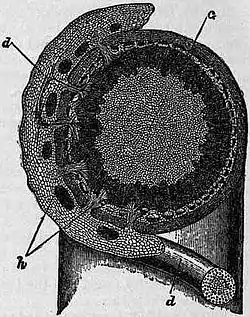 | Fig. 1.—Cuscuta europaea, Dodder. | Fig. 2.—Cuscuta glomerata. Section through union between parasite and host. | |