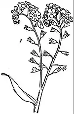 Fig. 19.—Scorpioidal or cicinal cyme of Forget-me-not (Myosotis palustris). | ||||||||||||