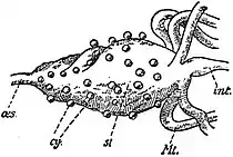| oes, | Oesophagus. | Mt, | Malpighian |