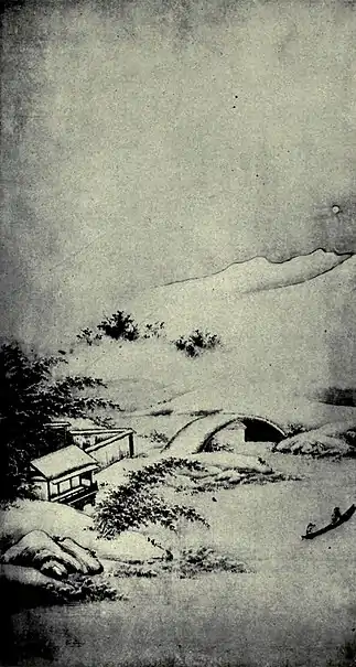| Fig. 6.—KWANNON, GODDESS OF MERCY. By Mincho or Cho Densu (1352–1431). | Fig. 7.—LANDSCAPE IN SNOW. By Kano Motonobu (1476–1559). | Fig. 8.—JUROJIN. By Sesshiu (1420–1506). |