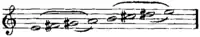 We may regard the Olympus scale, however, as consisting of two tetrachords, eliding one interval in each, for the tetrachord, or series of four notes, was very early adopted as the fundamental principle of Greek music, and its origin in the lyre itself appears sure. The basis of the tetrachord is the employment of the thumb and first three fingers of the left hand to twang as many strings, the little finger not being used on account of natural weakness. As a succession of three whole tones would form the disagreeable and untunable interval of a tritonus, two whole tones and a half-tone were tuned, fixing the tetrachord in the consonant interval of the perfect fourth. This succession of four notes being in the grasp of the hand was called συλλαβή, just as in language a group of letters incapable of further reduction is called syllable. In the combination of two syllables or tetrachords the modern diatonic scales resemble the Greek so-called disjunct scale, but the Greeks knew nothing of our categorical distinctions of major and minor. We might call the octave Greek scale minor, according to our descending minor form, were not the keynote in the middle the thumb note of the deeper tetrachord. The upper tetrachord, whether starting from the keynote (conjunct) or from the note above (disjunct), was of exactly the same form as the lower, the position of the semitones being identical. The semitone was a limma (λεῖμμα), rather less than the semitone of our modern equal temperament, the Greeks tuning both the whole tones in the tetrachord by the same ratio of 8:9, which made the major third a dissonance, or rather would have done so had they combined them in what we call harmony. In melodious sequence the Greek tetrachord is decidedly more agreeable to the ear than the corresponding series of our equal temperament. And although our scales are derived from combined tetrachords, in any system of tuning that we employ, be it just, mean-tone, or equal, they are less logical than the conjunct or disjunct systems accepted by the Greeks. But modern harmony is not compatible with them, and could not have arisen on the Greek melodic lines.