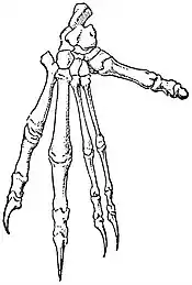 Fig. 10.—Skeleton of Right Hind-Foot of Koala (Phascolarctus cinereus), showing stout opposable hallux, followed by two slender toes, which in the living animal are enclosed as far as the nails in a common integument. |