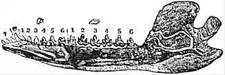Fig. 13.—Lower Jaw of Triconodon mordax (nat. size). |
