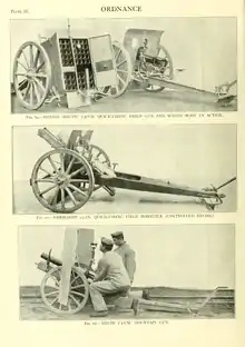 Fig. (4. DANISH (.IvRUPP) 7-5-CM. QUICK-FIRING FIELD GUN AND WAGON BODY IN ACTION.