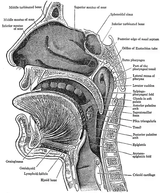 Sagittal Section through Mouth, Tongue, Larynx, Pharynx and Nasal Cavity. |