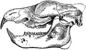 | Skull of Tillotherium fodiens. (¼ nat. size.) |