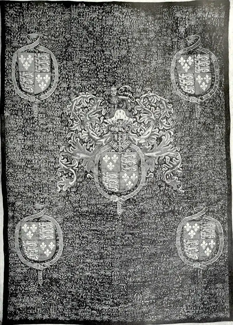 Fig. 18.—Brussels, early 16th century, hanging, covered with masses of flowers, on which are shields bearing the royal arms.