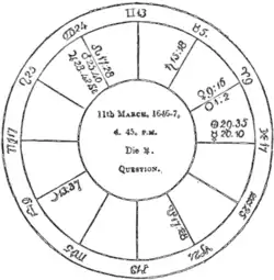The above is the famous figure which William Lilly drew to decide whether Presbytery should stand in England. Zadkiel adduces this figure with the judgment pronounced upon it as a decisive proof of the science, and of its ability to decide the most important questions, but public and private.