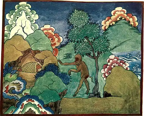 THE MONKEY CALLING INTO THE TORTOISE'S CAVE.