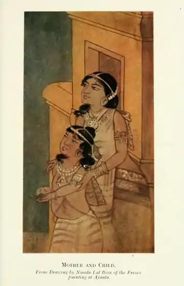 Mother and Child. From Drawing by Nanda Lai Bose of the Fresco painting at Ajanta.