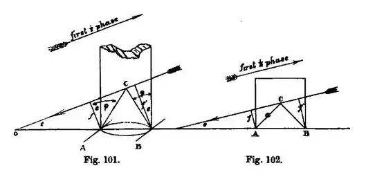 Let a body cylindrical or prismatic be overturned by a wave in the path (Fig. 101). Inertia of motion, due to