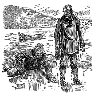 “A few moments later two dripping figures crawled painfully out upon a huge cake of ice.”