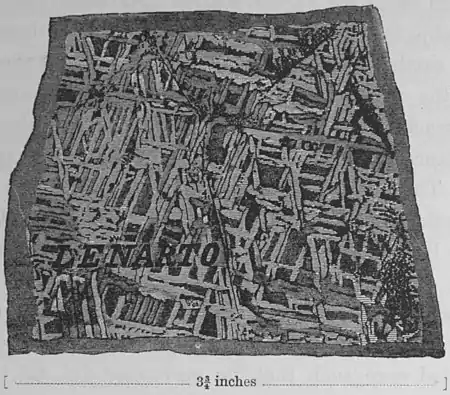 Fig. 38.—Slab of Crystallised Iron cut from the Aerolite of Lenarto, Hungary.